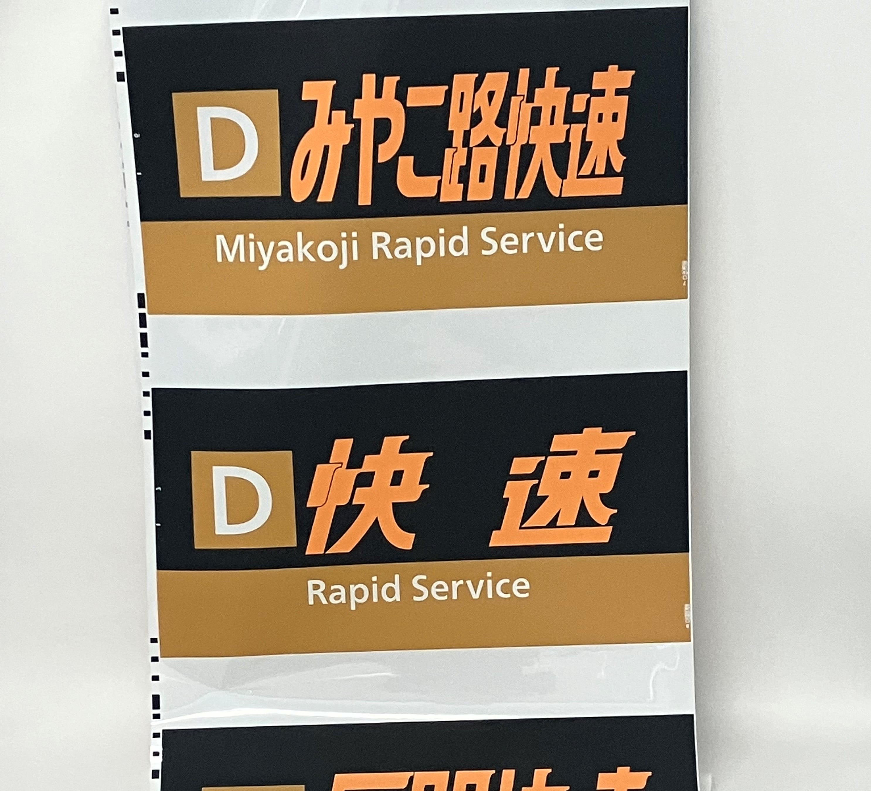 大和路快速・みやこ路快速車両で使用されていた221系前面種別幕(字幕のみ)を販売します。