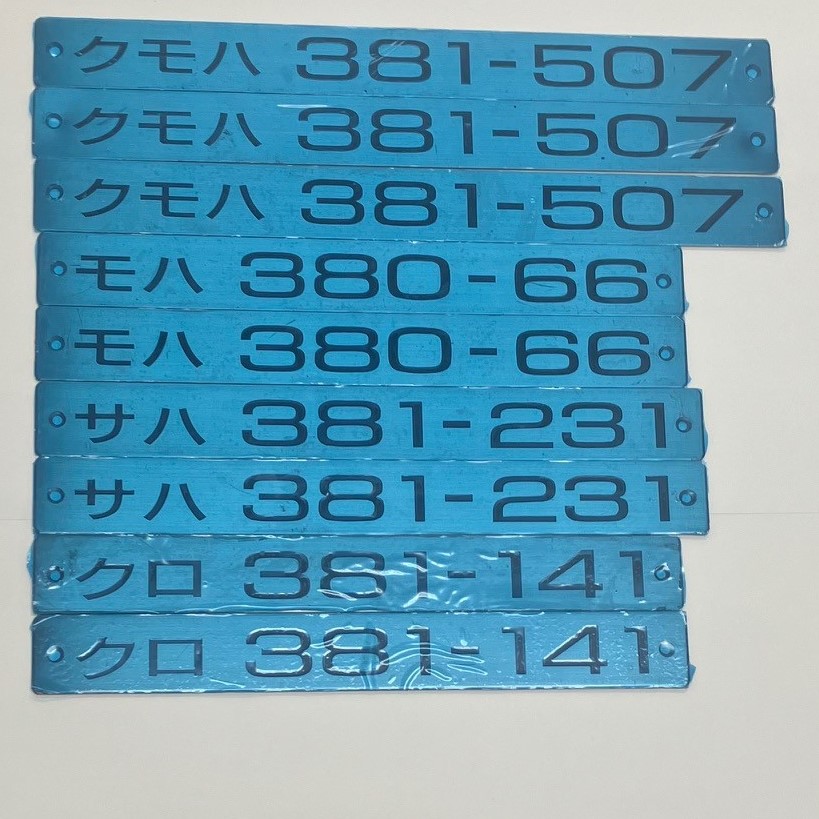 - 種別幕:ポリエステルフィルム / 車内車号銘板:ステンレス