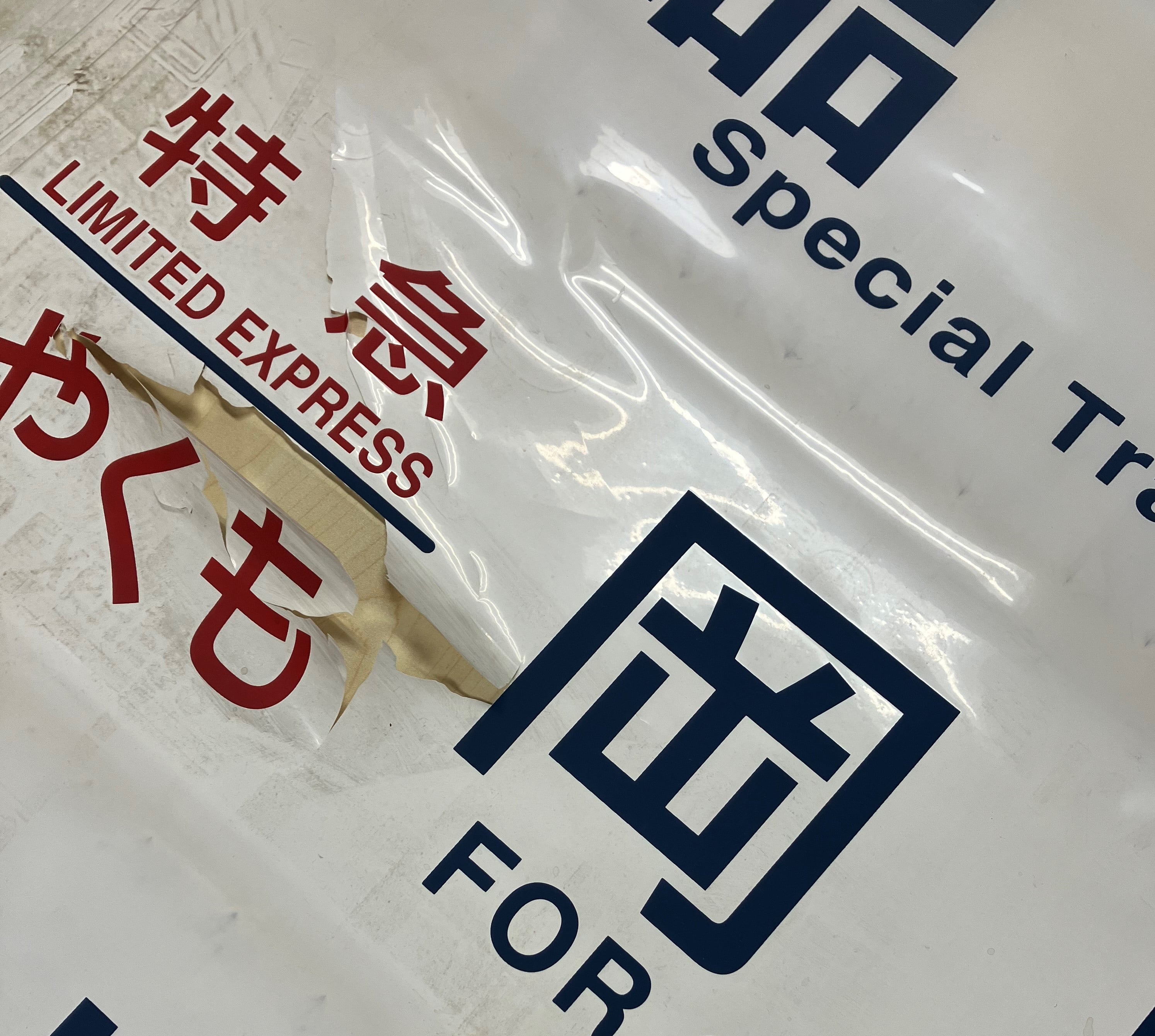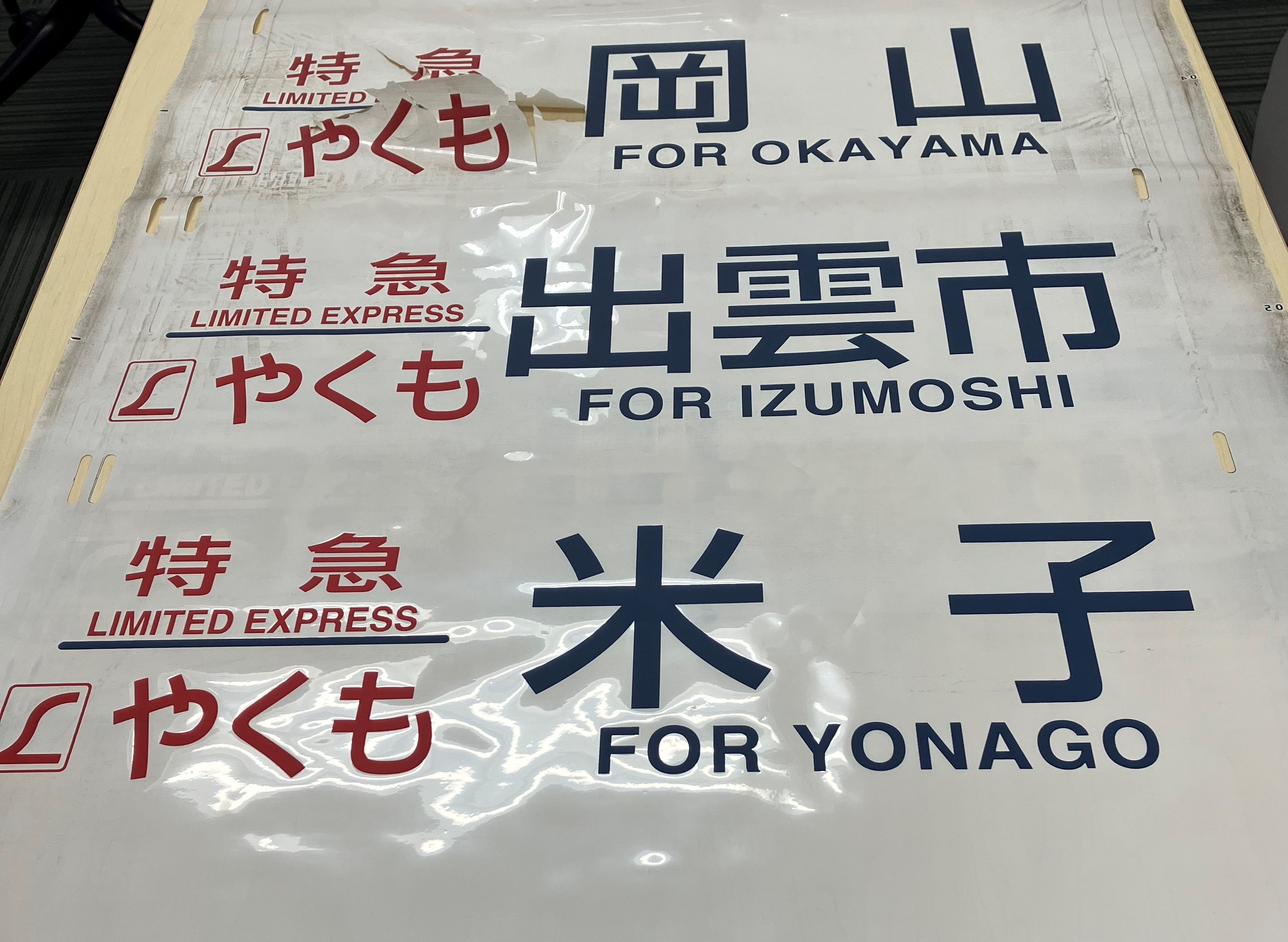 多くのお客様に愛され続けた381系「やくも」の種別幕と車内車号銘板をセットにして販売いたします。