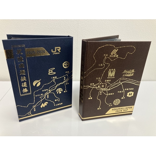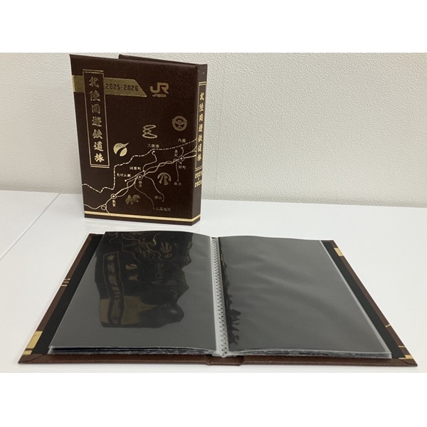 北陸周遊鉄道旅25-26御乗印をすべて収納できるほか、フォトアルバムとしてもご使用いただける差し込み式の本となっています。 色は2色あります。 サイズ:幅120×高さ170×20