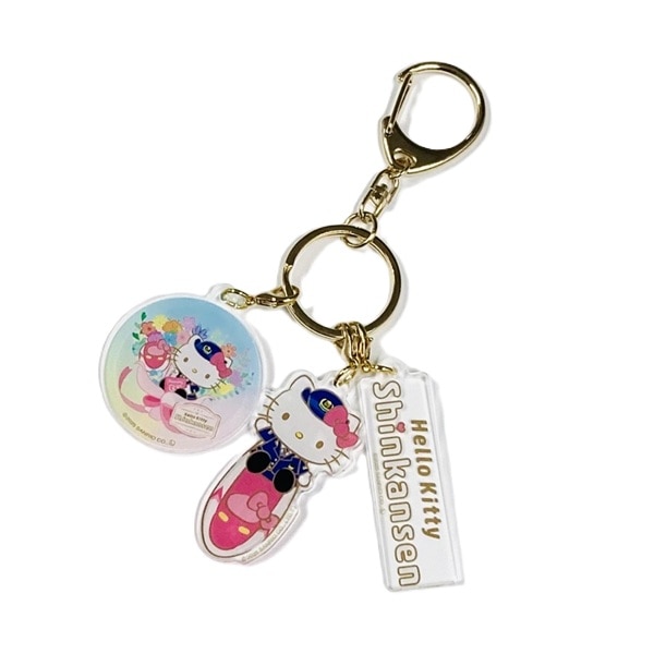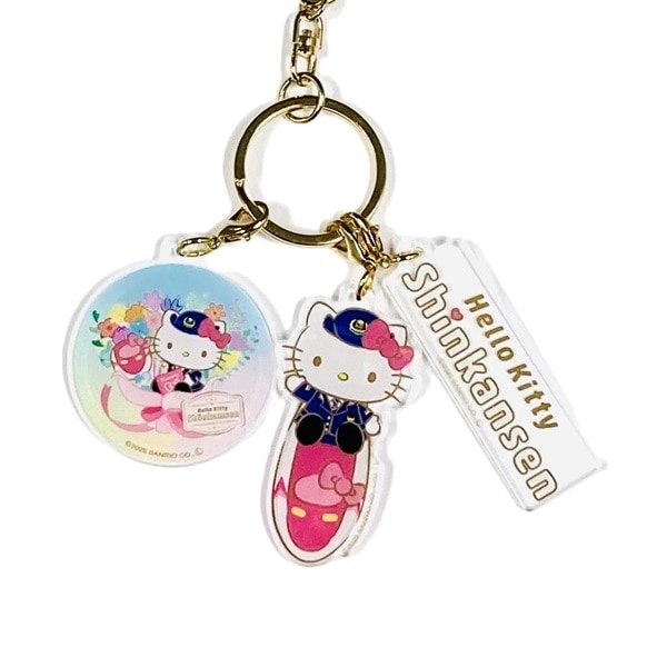 ブーケに包まれたハローキティなど、特別なイラストの3連チャームキーホルダーです。