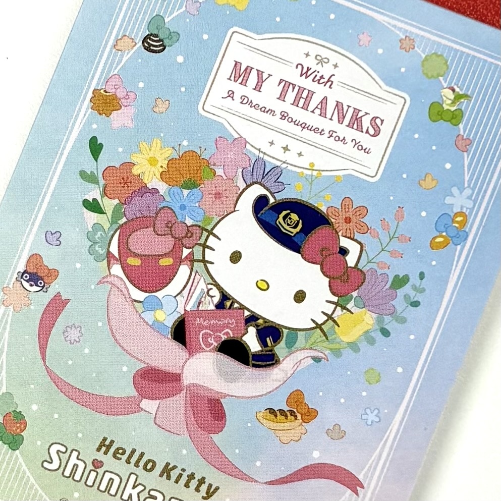 ブーケに包まれたハローキティなど、「ありがとう」の気持ちを込めた特別なイラストのメモ帳です。中のメモ部分は、2種類のデザインです♪
