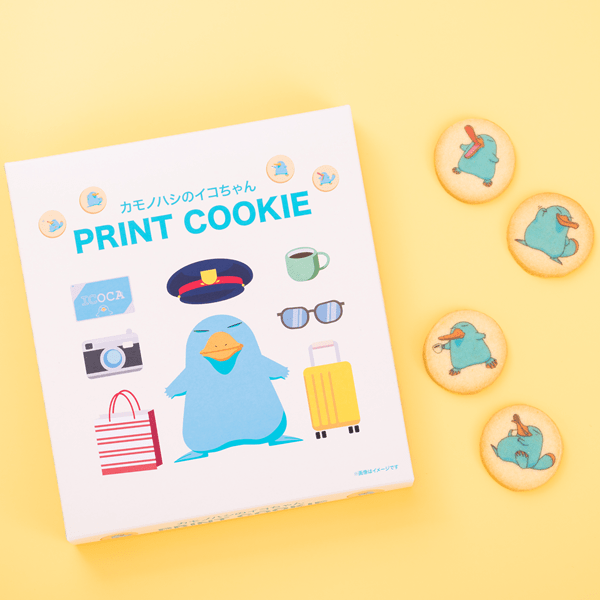 イコちゃんのイラストが印刷された可愛らしい一口サイズのクッキー