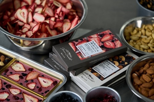 イチゴとキウイ、白桃とクコの実、ピオーネとオレンジなど、蒜山ショコラの人気の秘密は、その華やかな見た目と、チョコレートとドライフルーツなどの素材の組み合わせにあります。