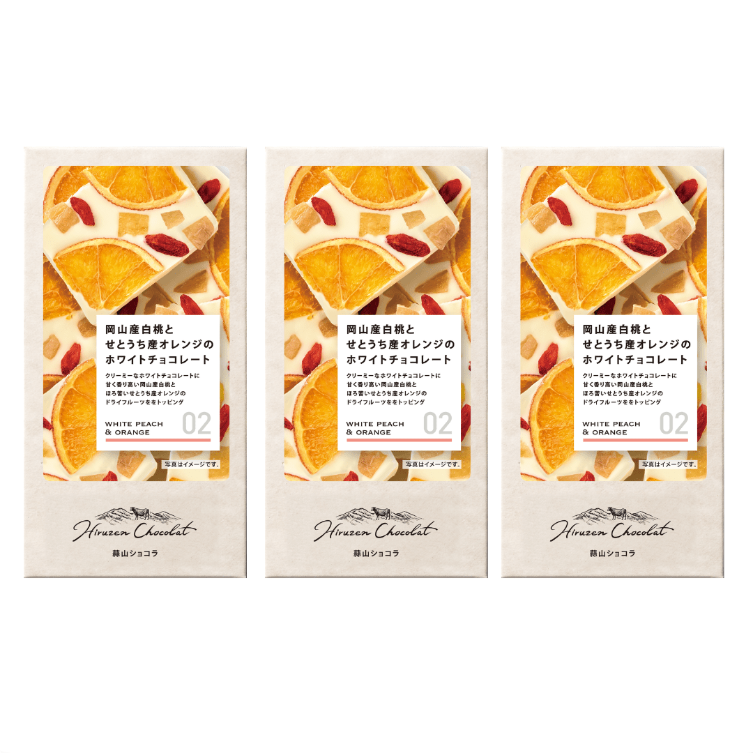 蒜山ショコラ 02岡山県産白桃とせとうち産オレンジのホワイトチョコレート 3枚