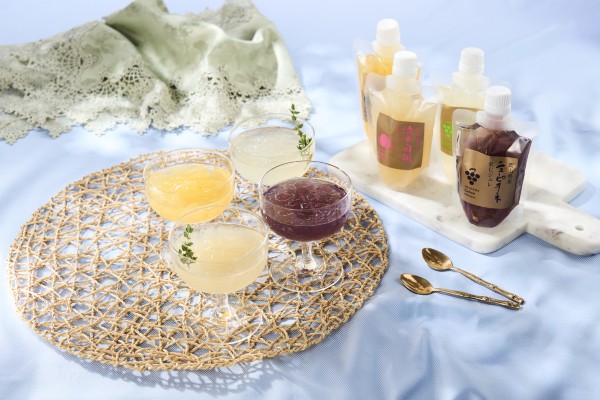 岡山の特産品である清水白桃やピオーネ、シャインマスカット、岡山黄桃を、まるごと使用し風味豊かなジュレに仕上げました。それぞれの果物の一番美味しい時期を見極め、完熟の果実のみを使用することで、果物本来の美味しさを味わっていただけます。飲みやすいスタンドパックで、お子様からご高齢の方までお手軽にお楽しみいただける商品です。