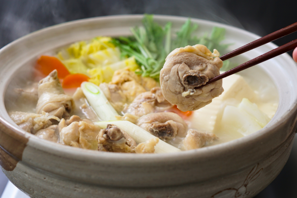 料亭「博多華味鳥」で味わう水たきスープと同じ製法にて炊き出されたスープを使用しています。
