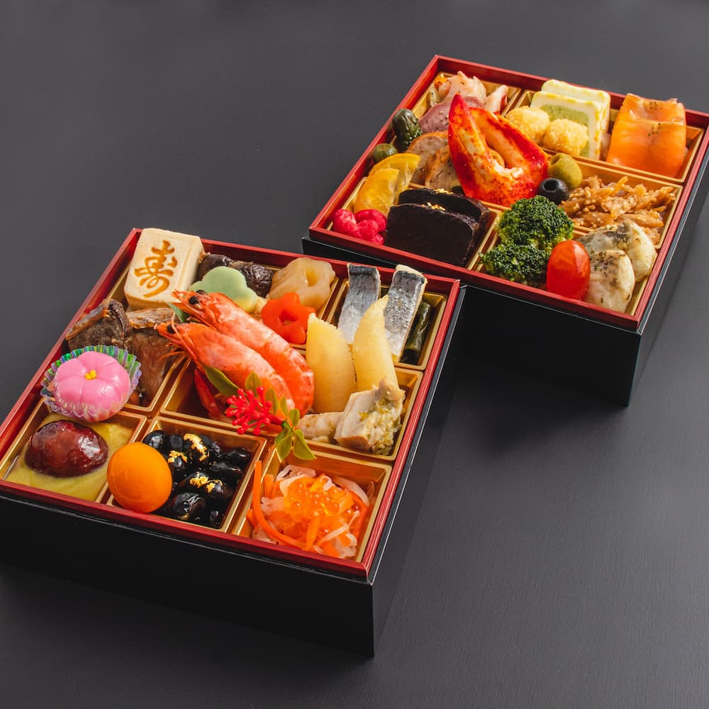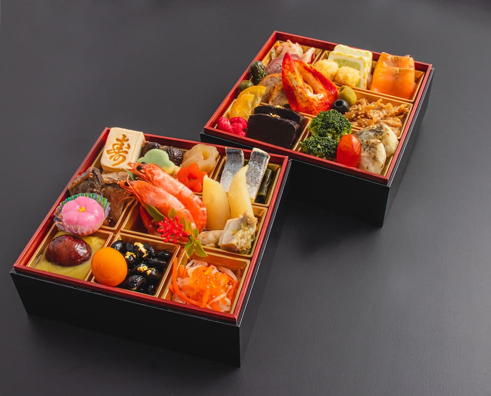 ①解凍方法:おせち料理は1段ずつ分けて冷蔵庫に入れ、約24時間解凍してください。