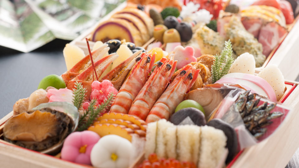 商売繁盛の神様として知られる「えびす様」の総本社、西宮神社のお膝元にある「漬新」 がえびす様にちなんだおせちを謹製させていただきました。