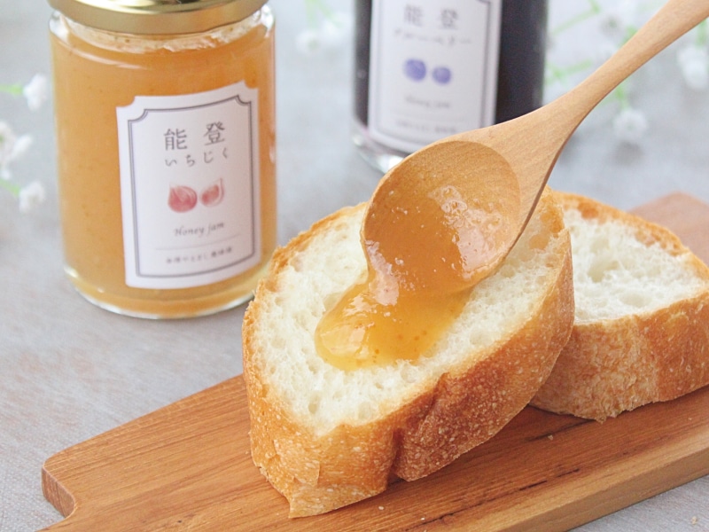 【能登いちじくジャム】いちじく(石川県能登産)、ビートグラニュー糖、蜂蜜/酸化防止剤(ビタミンC)、ゲル化剤(ペクチン:リンゴ由来)