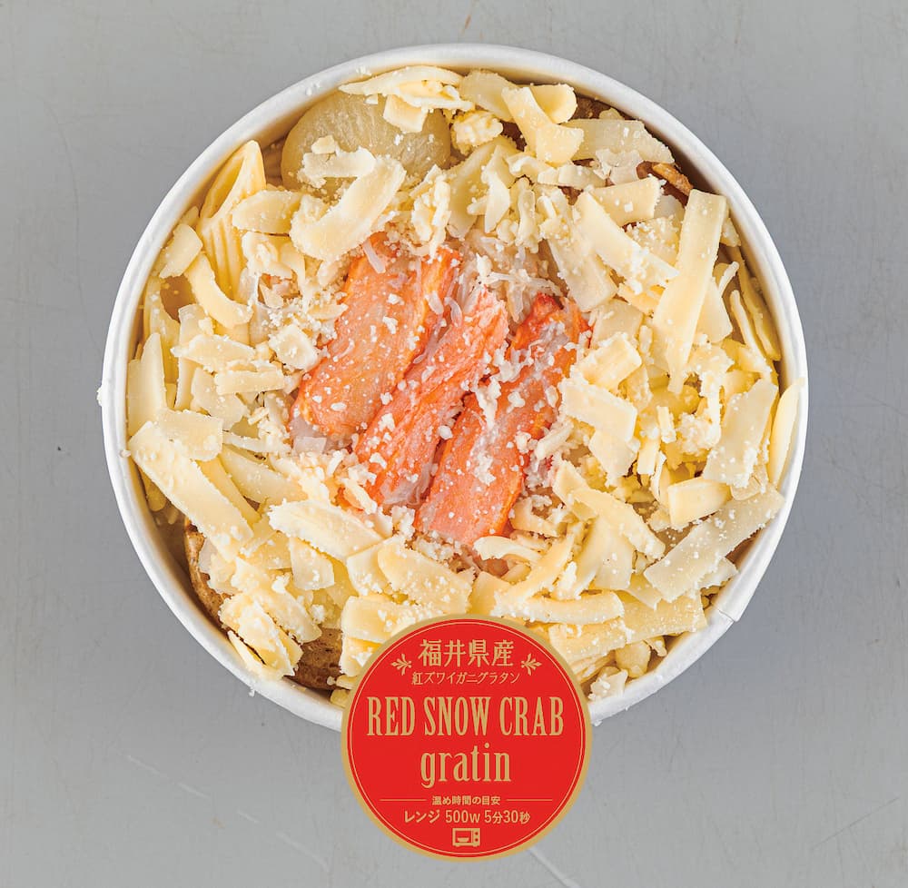 - ホワイトソース(国内製造)、ペンネ、紅ずわいがにむき身、ばれいしょ、チーズ、グリルたまねぎ、かに調味液/増粘剤(加工デンプン、キサンタンガム)、酒精、加工でん粉、乳化剤、調味料(アミノ酸等)、香料、アルギン酸エステル