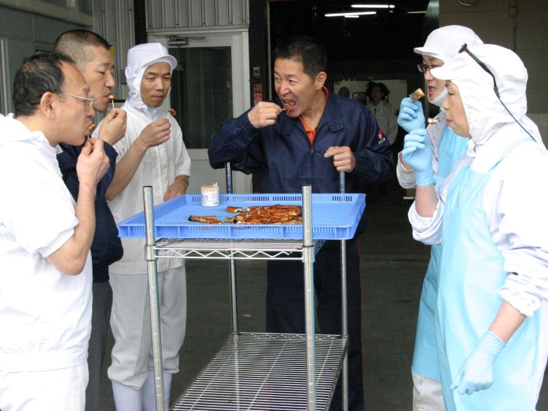 うなぎの入荷毎に味に敏感な5人の職人が試食検査を行い、