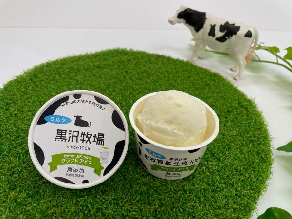 黒沢牧場自慢の生乳をたっぷり使用し、乳化剤・安定剤を使わずに仕上げたクラフトミルクアイスクリームです。
