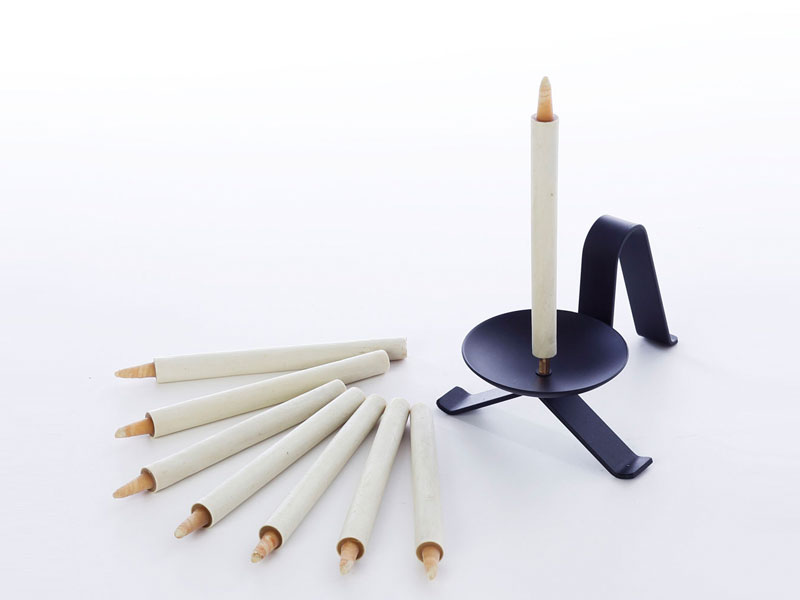 - ろうそく:木蝋、和紙、イグサの髄 燭台:真鍮