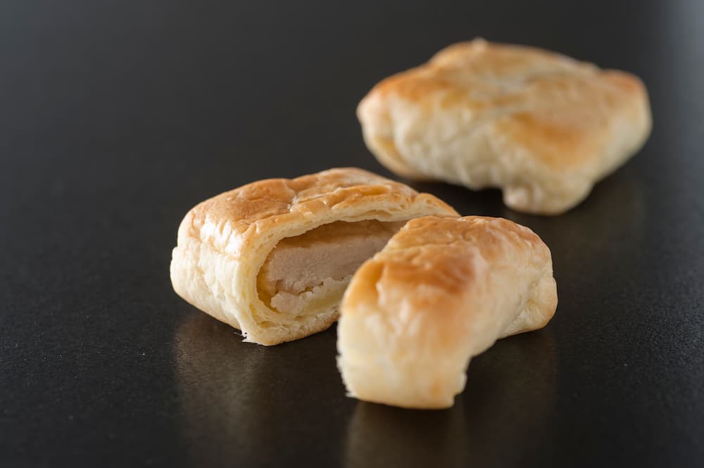 かけはし(りんご風味):パイ生地(小麦粉、マーガリン、バター、その他)(国内製造)、白いんげん豆、砂糖、蜜漬けりんご、卵、ショートニング、味醂/乳化剤、香料、酸味料