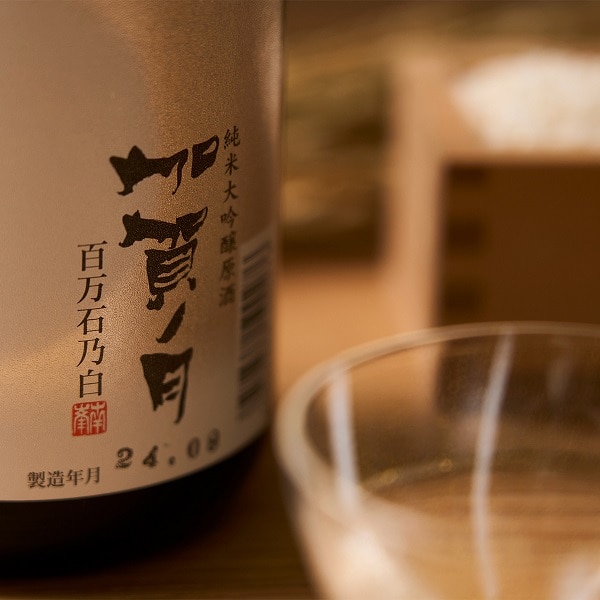 「加賀ノ月 百万石乃白」に使用した酒米は、名前の通り「百万石乃白」。大粒米の「ひとはな」と吟醸酒向けの「越淡麗」を掛合わせた石川県独自の酒米に、大吟醸造りに多く使われる「山田錦」を交配し、石川県が11年の歳月をかけて開発した酒米の新品種です。2020年に「石川酒68号」の愛称を一般公募して、「百万石乃白」に決定。その年に各蔵元が「百万石乃白」を使ったお酒を一斉に発売しました。