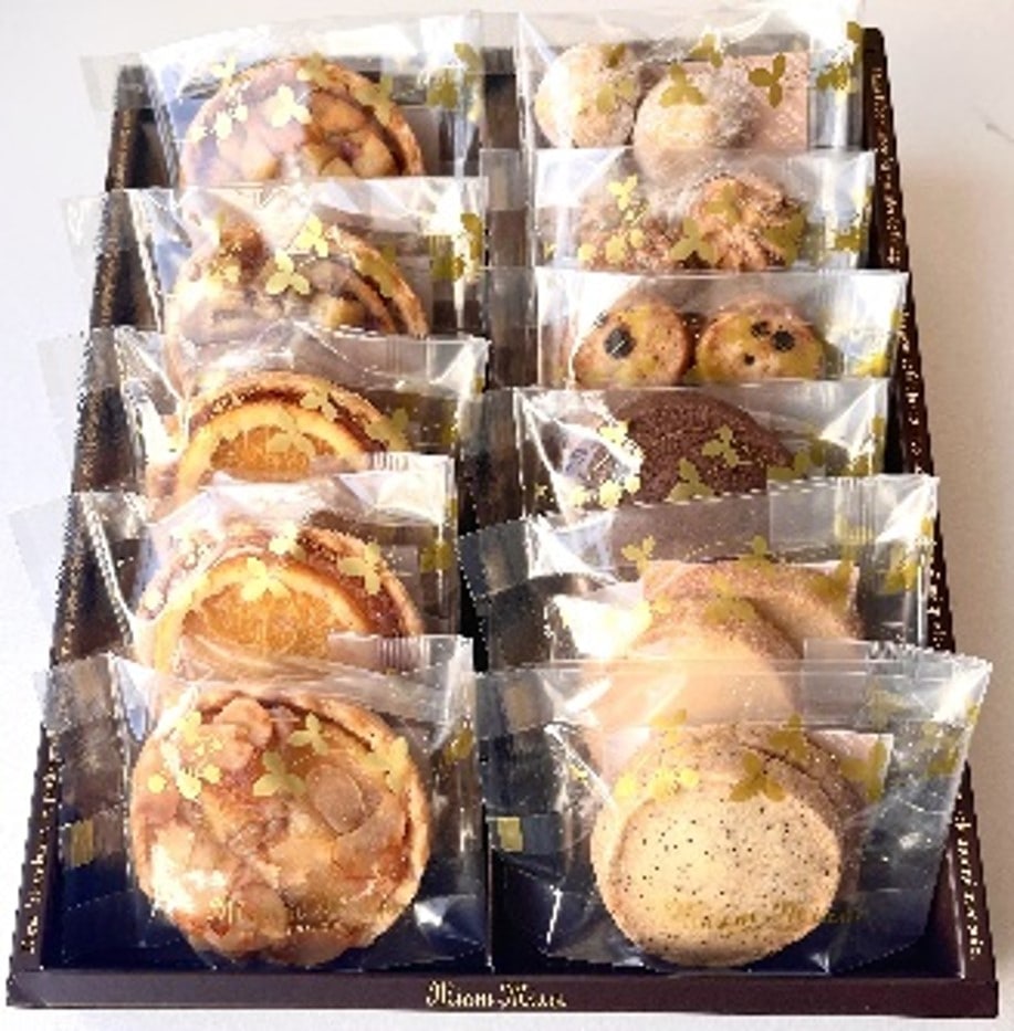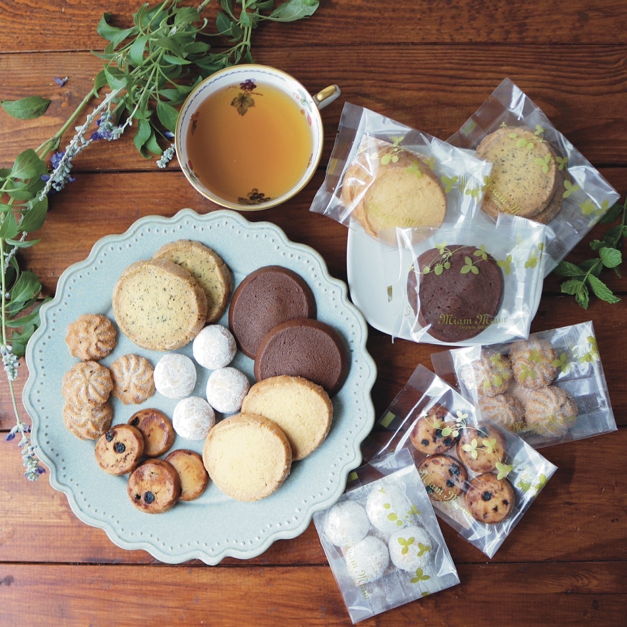 香り高いアールグレイ茶葉を使ったサクサクの紅茶サブレ、 瀬戸内レモンの果皮が入った爽やかなレモンサブレ、 ココアの風味が楽しめるチョコサブレ、ブルーベリー入りのコクのあるチーズサブレと、 香ばしいヘーゼルナッツ、優しい甘さとアーモンドスライス入りのブールドネージュ、 それぞれのかわいい形と個性を楽しめる贅沢ギフトです。