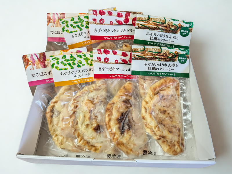- ●きずつきトマトのマルゲリータ: 小麦粉(国内製造)、トマト24%(仕込み時)(国産)、ばれいしょ(国産)、プロセスチーズ、乳等を主要原料とする食品、ナチュラルチーズ、食用オリーブ油、食塩、砂糖、バジル、パン酵母、おろしにんにく/増粘剤(加工デンプン、増粘多糖類)、乳化剤、セルロース、酢酸(Na)、酸味料、調味料(アミノ酸)、V.C、カロチン色素、pH調整剤、(一部に卵・乳成分・小麦を含む)