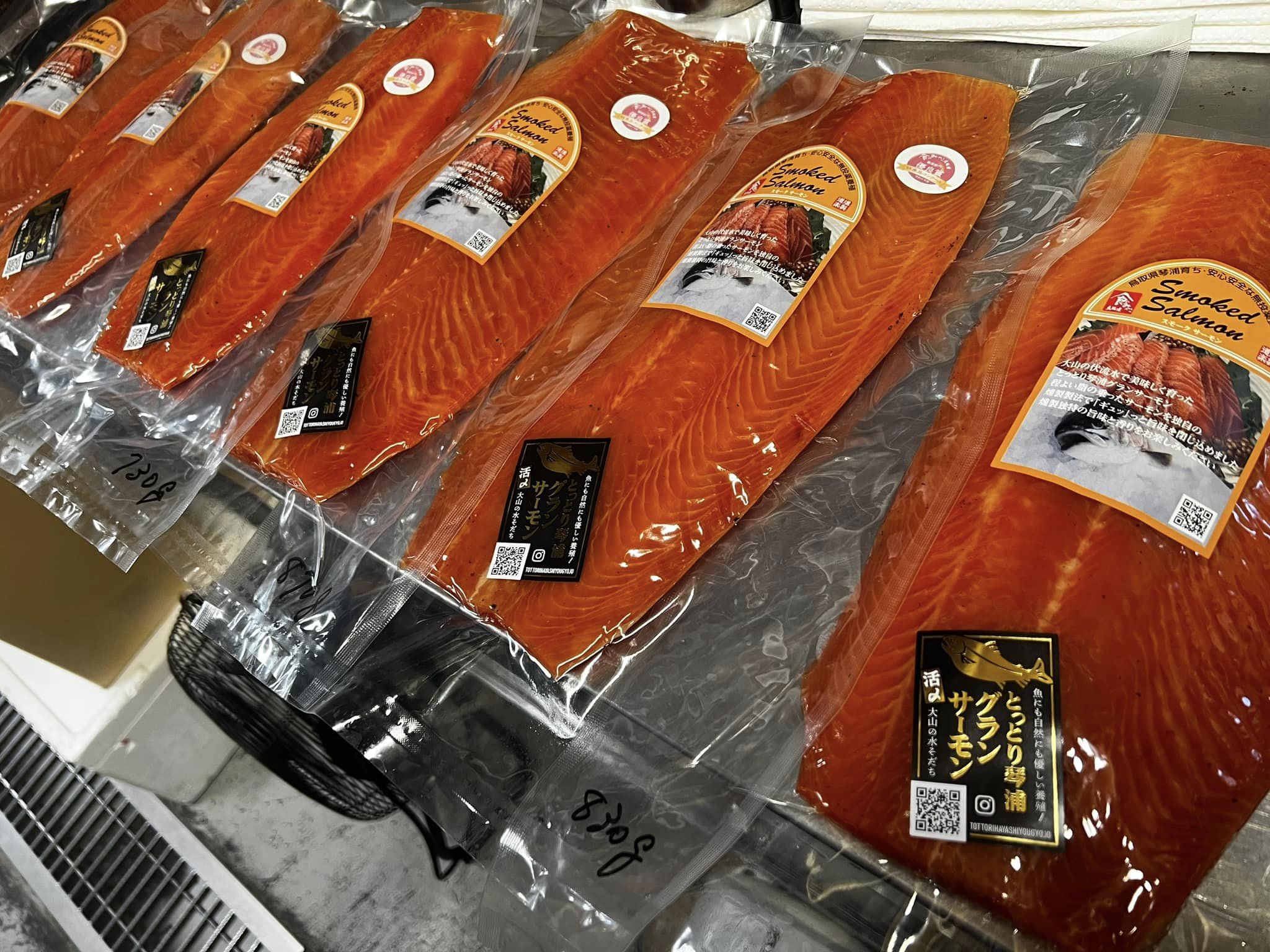 「食のみやこ鳥取県」特産品コンクールにて優良賞をいただいた琴浦育ちスモークサーモンです。