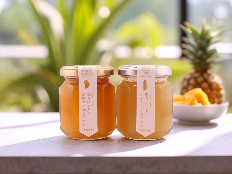 石垣島の暖かな陽ざしと、ゆったりと流れる時間の中で育ったマンゴーとパイナップルを贅沢にジャムにしました。