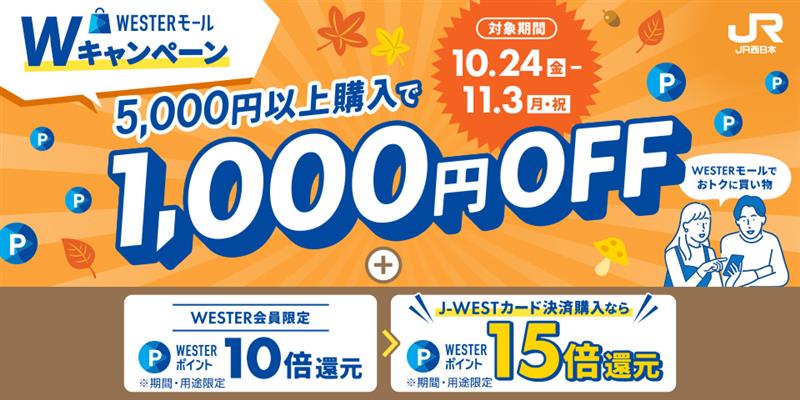 ・商品ご購入時にJ-WESTカード以外の決済いただいた場合、10倍のWESTERポイント付与です。(WESTERポイント(基本)1倍+WESTERポイント(期間・用途限定)9倍の計10倍ポイント)