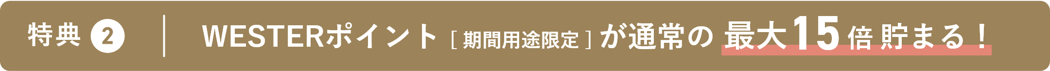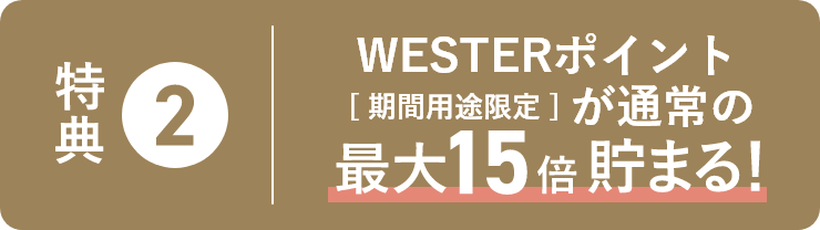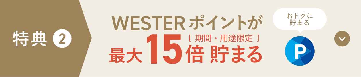 キャンペーン期間中は、さらに9倍のWESTERポイント(期間・用途限定)がたまり、合計で10倍のWESTERポイント(期間・用途限定)がたまります。