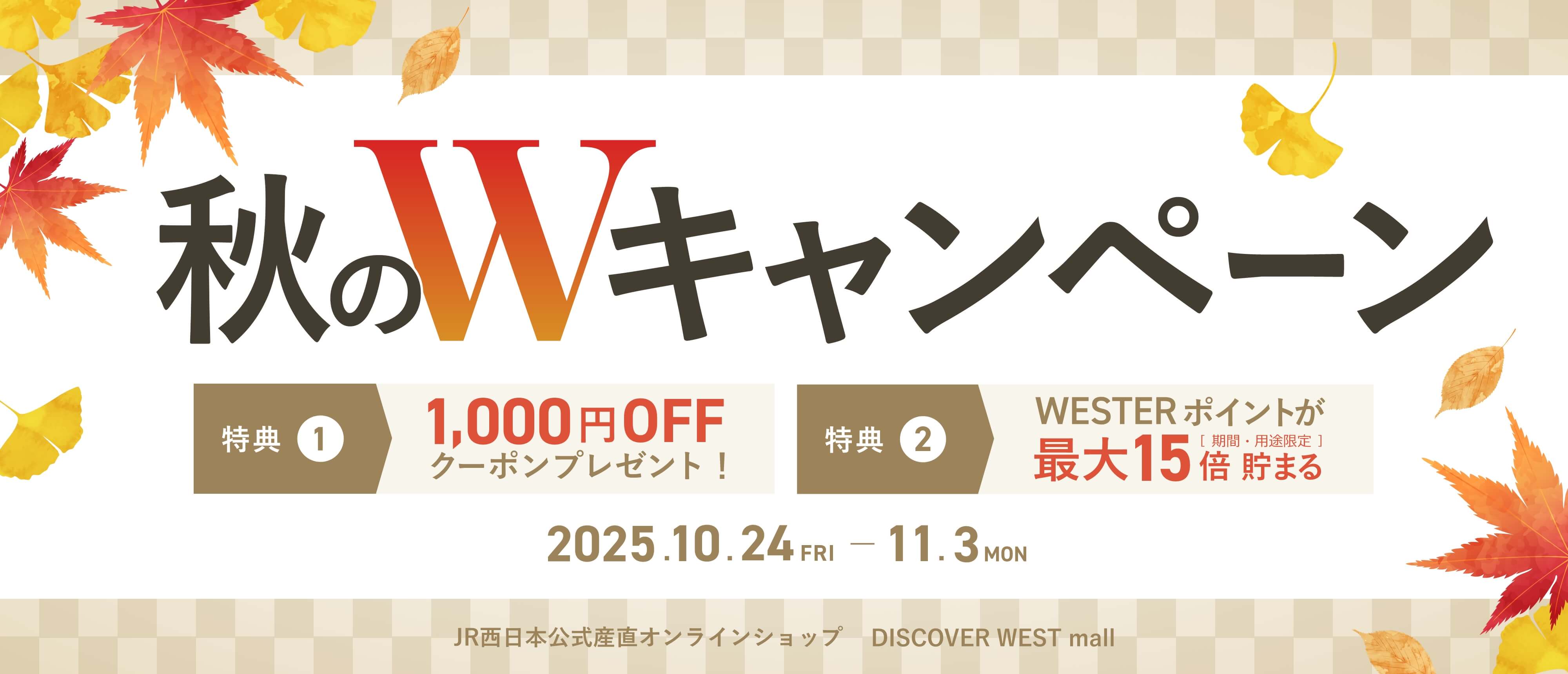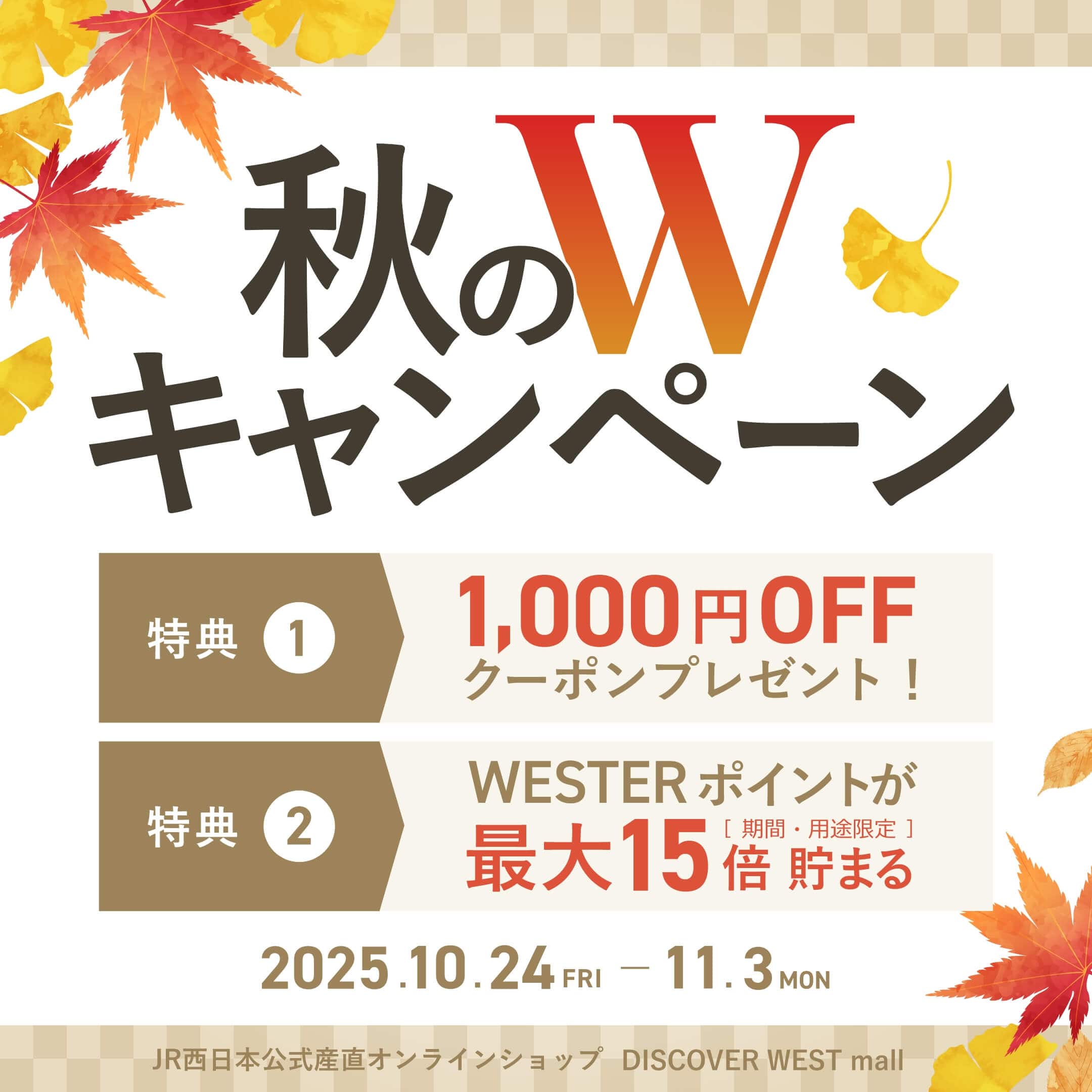 ・商品ご購入時にJ-WESTカードで決済いただいた場合、15倍のWESTERポイント付与です。(WESTERポイント(基本)1倍+WESTERポイント(期間・用途限定)14倍の計15倍ポイント)