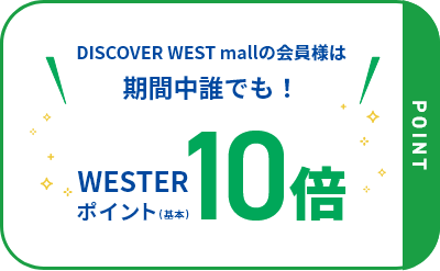 商品ご購入で10倍のWESTERポイント付与です。(通常ポイント+お買物DAYSキャンペーンポイント9倍の計10倍ポイント)