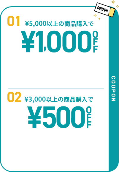 5,000円以上のお買い上げで1,000円OFF!など