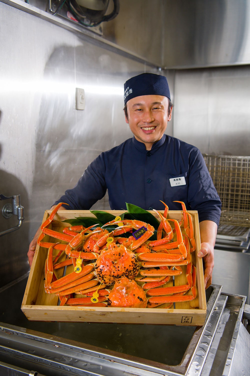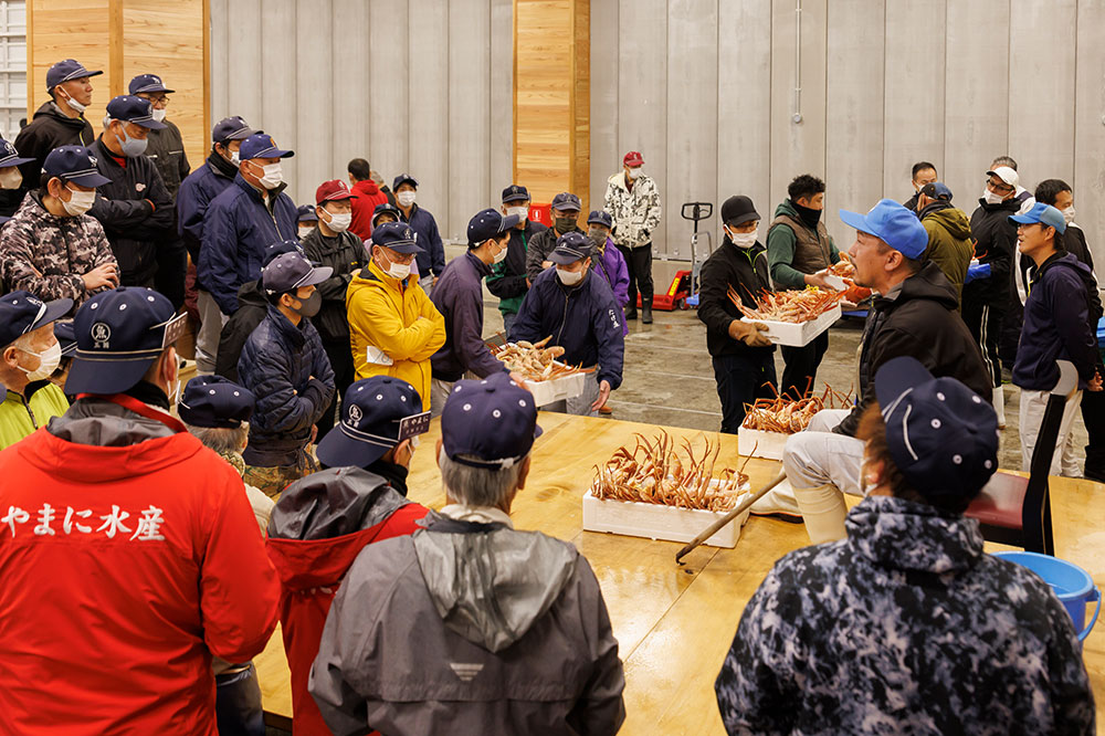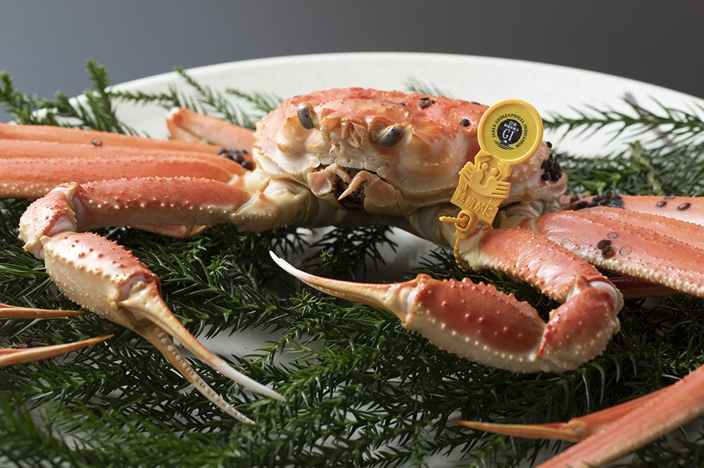 三国は海の幸の宝庫。夕方のセリにかけられた魚介は、そのまま料亭などに出されます。なかでも三国港の越前ガニや福井甘えびは、これを旅の目的にしても後悔なしの味わい。その筆頭の「三国湊越前ガニ」は、福井で水揚げされるオスのズワイガニの中でも毎年皇室に献上される高級品。よくタグ付きの蟹といいますが、三国港では基準を満たすカニに「献上品質」のタグが付けられます。