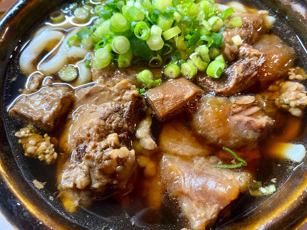 文化庁100年フードとして認定された「小倉焼きうどん」は、その香ばしさと奥深い味わいが特徴です。約40年前に小倉で発祥したという「肉肉うどん」もぜひお試しを。角切りの牛肉と黒いスープが特徴的ですが、見た目に反して出汁が効いており、トッピングの生姜が爽やかな風味を添え、意外なほどあっさりといただけます。