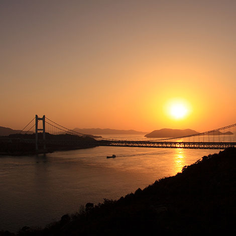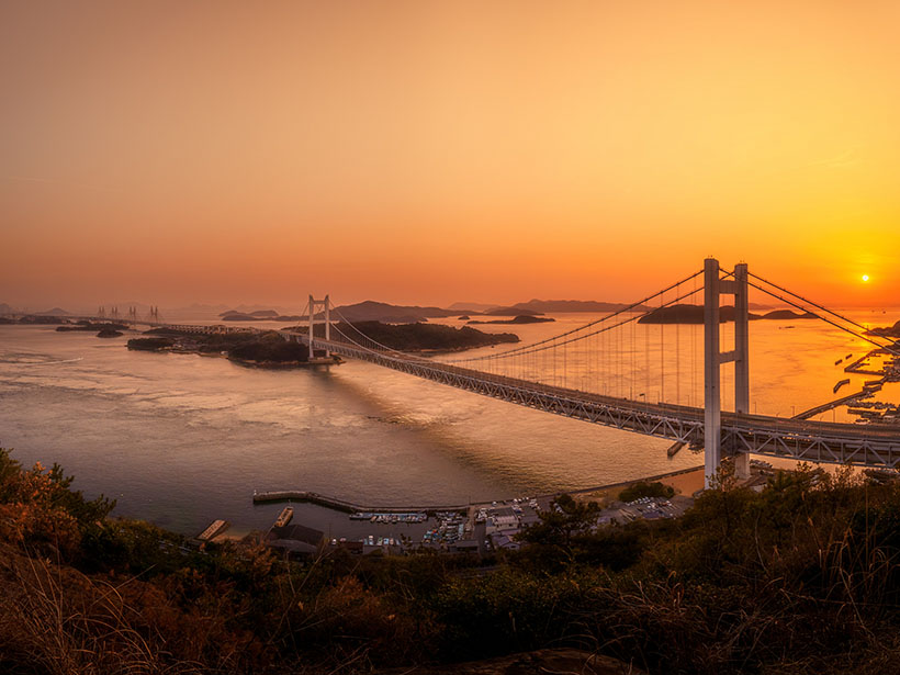 明治期の訪日外国人たちから高く評価され、旧5,000円札の肖像としても知られる新渡戸稲造が「世界の宝石」と称えた瀬戸内海の「多島美」。今もその美しさは変わりませんが、昔の眺望とひとつ違っているのは「瀬戸大橋」の存在です。1988年、世界最長の鉄道道路併用橋として開通したこの巨大吊り橋は、瞬く間にせとうちエリアのシンボルの座を獲得。点在する島々とも見事な調和を果たし、エリアを代表する景色の一つとなりました。