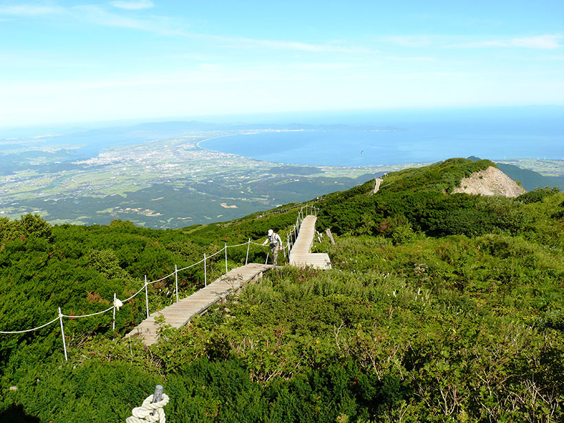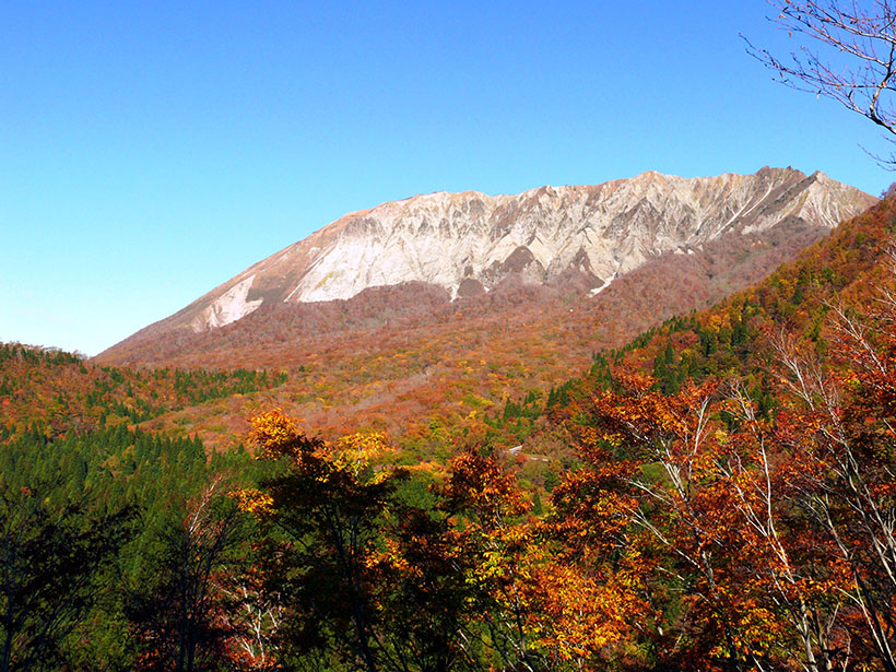 一方、「北壁」は、大山山頂から大山稜線に連なる三鈷峰(さんこほう)にかけて長さ2kmにわたる大断崖。屏風型の岩肌がそそり立つ猛々しい山の姿が迫力満点です。また、西側の遠方(米子方面)からは、なだらかな山容が伯耆富士(ほうきふじ)の名にふさわしい穏やかな景色が広がります。