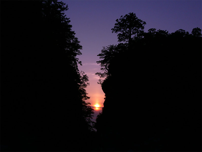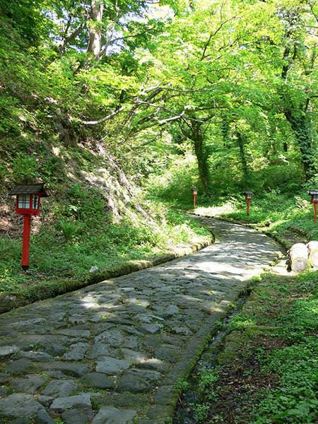 大山信仰の中心は、ハイキングのルートにもなっている「大山寺」。創建はおよそ1300年前で、最盛期には100を超える寺院が立ち並ぶほど隆盛を極めた大寺院でした。大山寺入口から大神山神社奥宮までは700mの参道が延び、「日本一長い石畳の参道」といわれます。その近くには、高さ50mに及ぶ断崖が門のようにそびえたつ「金門」があり、古来、聖なる地への門、または結界とされています。