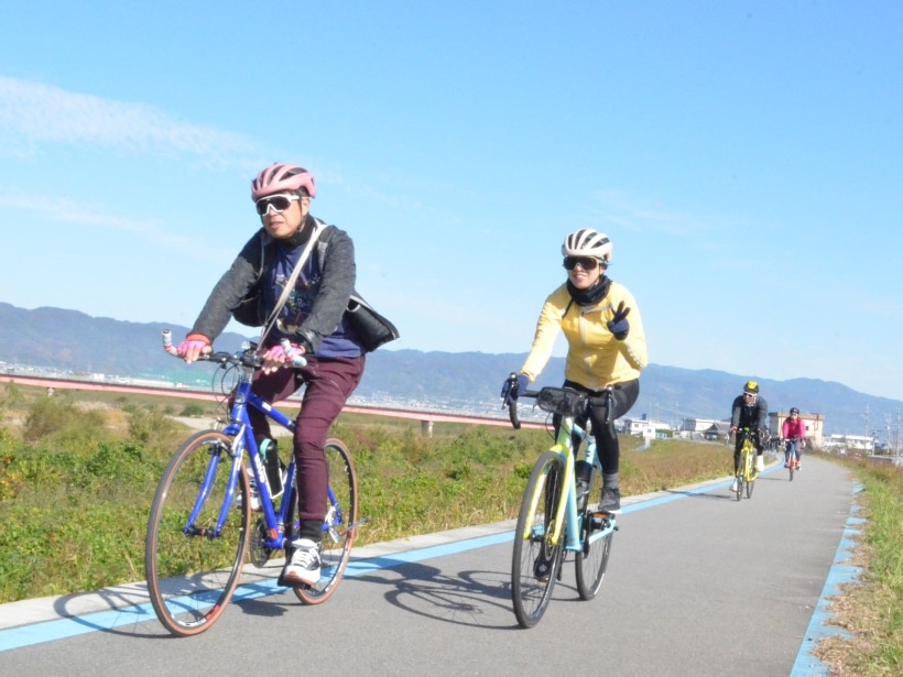 和歌山市から紀の川市・岩出市・かつらぎ町・橋本市一帯まで、紀の川沿いに整備された「紀の川サイクリングロード」は、ほぼ平坦で信号もなし。水のせせらぎと川面を走る風を感じながらのサイクリングは気分爽快です。