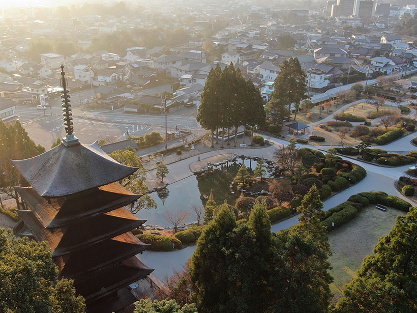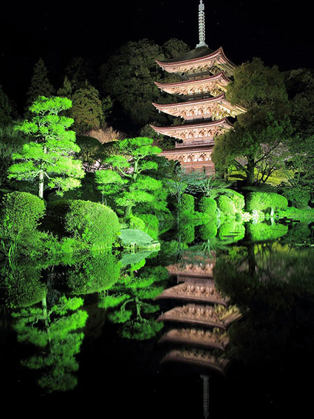 大内文化の最高傑作と評され、京都の醍醐寺五重塔などと共に日本三名塔の一つに数えられる「瑠璃光寺五重塔」。